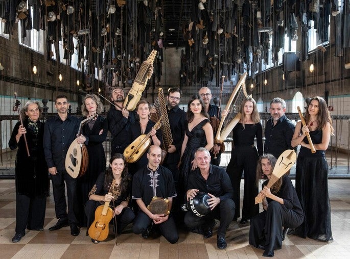 Het in Duitsland gevestigde Ensemble Multaqa is ook weer zo’n ensemble dat westerse oude muziek mengt met modale oosterse muziek. Dus ook hier zien we een mix van instrumenten zoals de ney, viola da gamba, oud, barokgitaar, djoze en de blokfluit die de dialoog met elkaar aangaan. Overigens omschrijven ze zelf hun muziek een trialoog van religies. Het ensemble wil in ieder geval bruggen bouwen tussen verschillende culturen door de eeuwen en genres heen. Hier gaan we kijken naar fragmenten van een concert met de Libanese zangeres Ghada Shbeir waarin Andalusische muziek gemengd wordt met onder andere klassieke Arabische muziek. In het nummer Ba'rubto horen we haar een oud Byzantijns lied zingen. Luister eens hoe mooi dit weer aansluit op het instrumentale stuk D.E.I.T.M.E.H.T.A van de Griekse Sofia Labropoulou (op de kanun), waarbij extra aandacht voor de schitterende boventonen van de kemenchespeler op 3:00 min. Een mooie afsluiter is Jadaka, een bekende Arabo-Andalusisch lied.